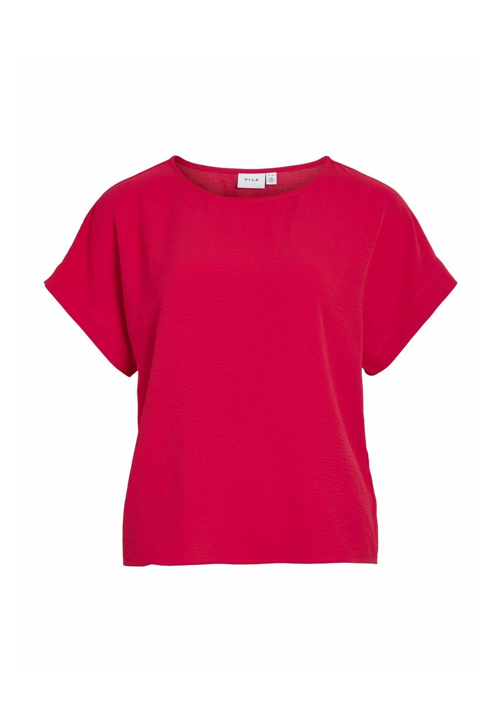 Блуза MIT KURZEN ÄRMELN RUNDHALS VILA, красный