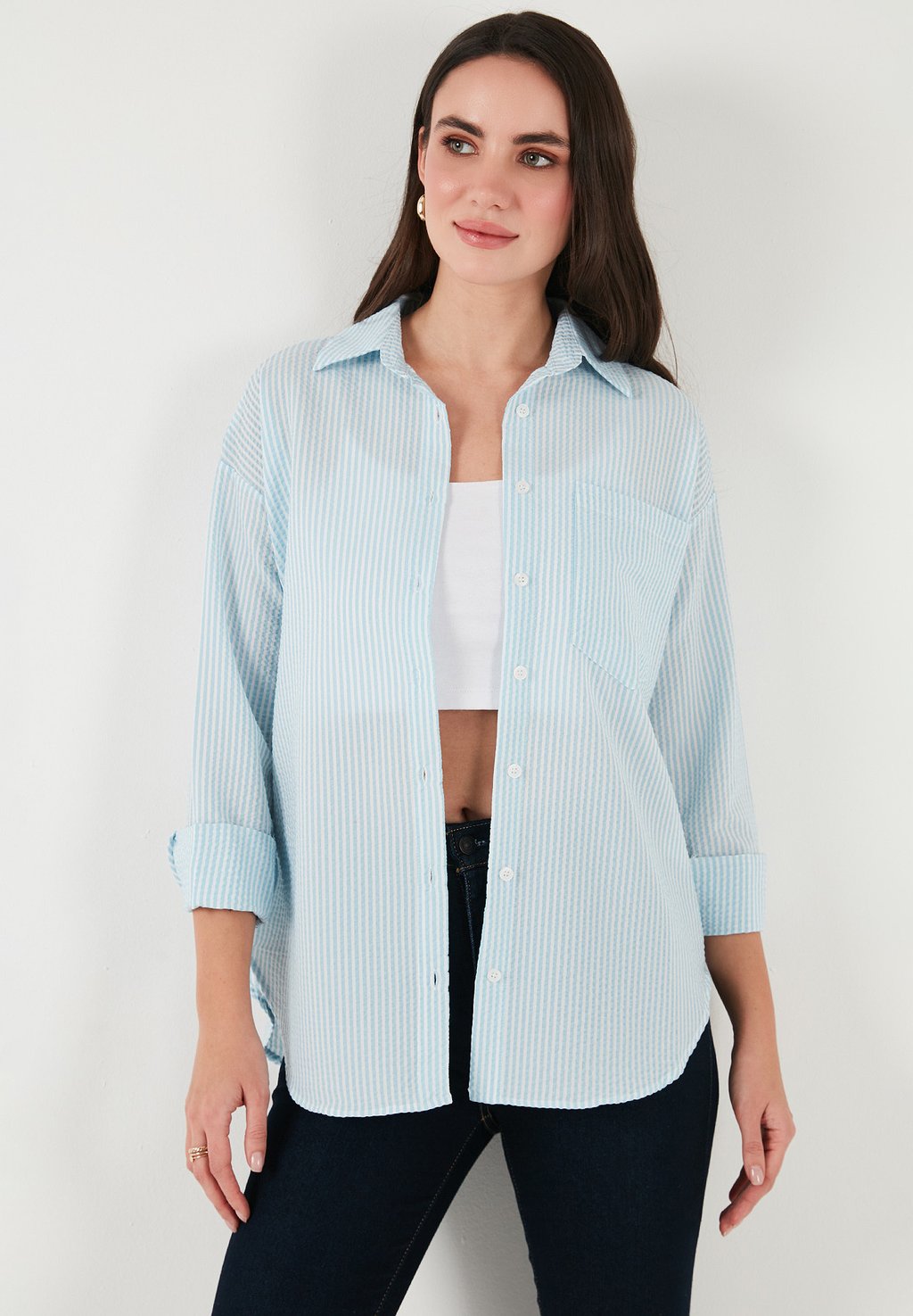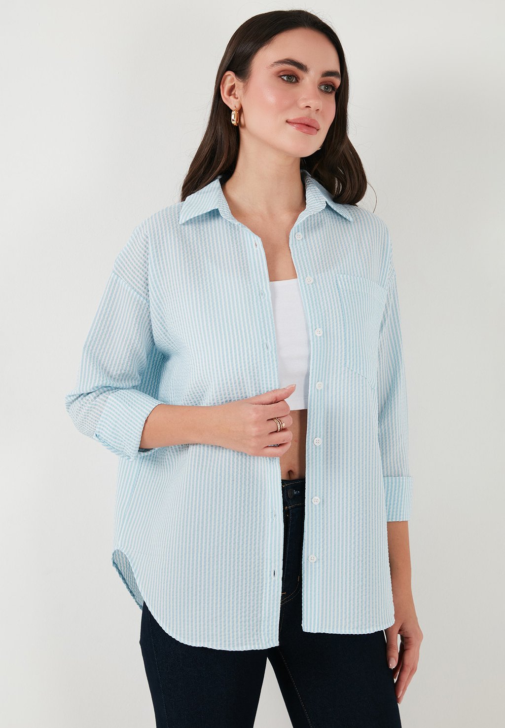 Блузка на пуговицах LELA, светло-голубой 6 880₽