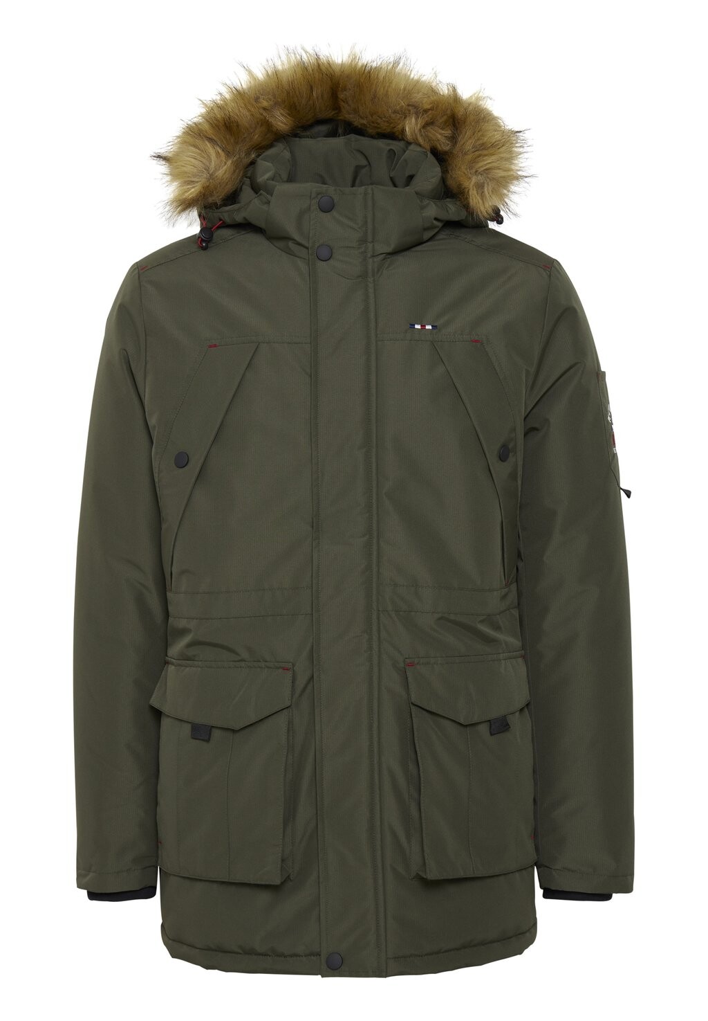 Капюшон: съемный воротник из искусственного меха на подкладке.