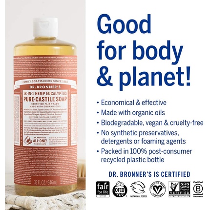 Жидкое мыло Pure-Castile Эвкалипт 32 унции 1000 мл Dr. Bronner's