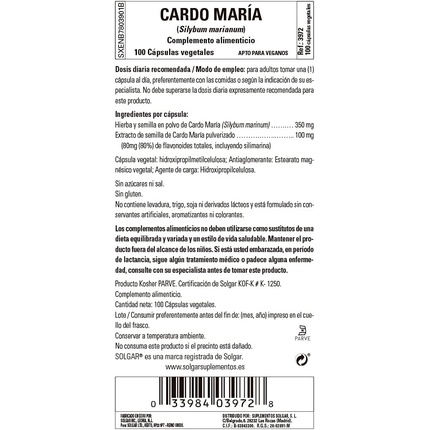 Расторопша пятнистая для поддержки печени 100 растительных капсул Solgar