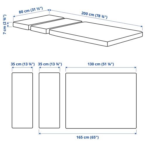 Один матрас ‒ три длины. С помощью 2 выдвижных частей матрас может расти вместе с вашим ребенком, от 130 до 165 или 200 см.