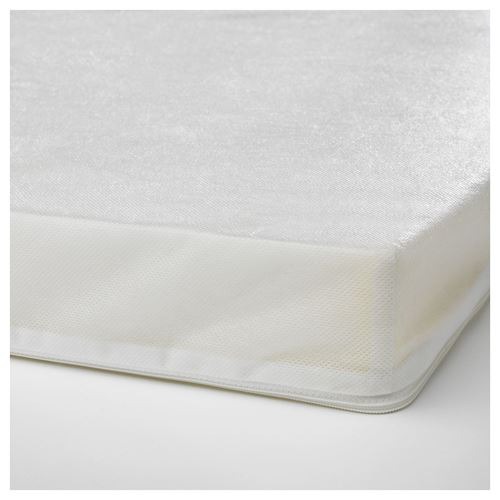 Простыня на резинке LEN доступна в двух размерах: один подходит для матраса для раздвижной кровати без удлинительных элементов (80x130 см), а другой подходит для матраса для раздвижной кровати с 1 удлинительной частью (80x165 см).