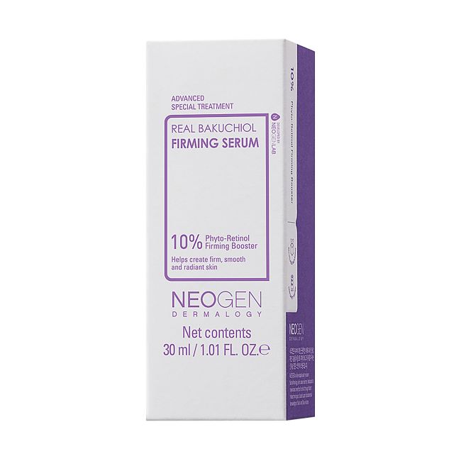 NEOGEN DERMALOGY REAL BAKUCHIOL FIRMING сыворотка для лица Средство способствует укреплению коллагена в коже, придавая ей эластичность и жизненную силу. Сыворотка помогает разгладить кожу, устранить мелкие морщинки и неровности, защищает от повреждения свободными радикалами и преждевременного старения. Содержит бакучиол. Применение Наносить на чистую и сухую кожу. Не использовать вместе с продуктами, содержащими много кислот (AHA, BHA, PHA), ретинола.