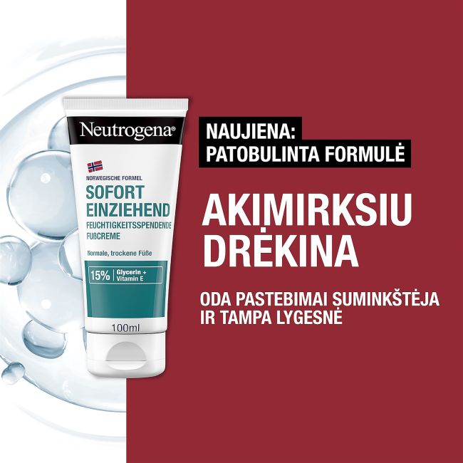 Крем для ног NEUTROGENA SOFORT EINZIEHEND предназначен для ухода за нормальной и сухой кожей ног. Этот нежирный крем для ног мгновенно увлажняет ваши ноги, поэтому вы можете надевать обувь сразу после его использования. Кожа стоп становится заметно мягче и глаже. Состав обогащен глицерином, который удерживает и сохраняет влагу, и витамином Е, обладающим антиоксидантными свойствами. Увлажняет в течение 24 часов. Формула подходит даже для чувствительной кожи. Перерабатываемая упаковка* на 50% изготовлена из переработанного пластика. (*при наличии возможностей для обработки, за исключением колпачка.) Содержит 15% глицерина, витамин Е. Применение Наносите на ступни ног ежедневно.
