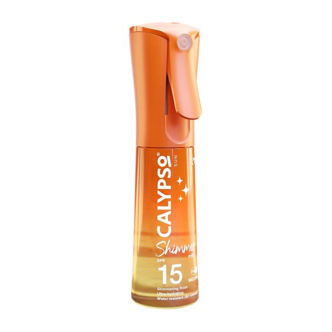 CALYPSO SUN SHIMMER SPF15 Спрей для защиты от солнца Спрей со средней степенью защиты защищает кожу от вредного воздействия солнечных лучей и придает ей сияние. Спрей сочетает в себе защиту от солнца UVA/UVB и сияние. Запатентованный аппликатор с микротуманом обеспечивает легкое распыление, придающее сияние. Быстросохнущая, прозрачная и водостойкая формула помогает защитить вашу кожу от солнечных лучей, и вы сможете сиять на солнце в течение всего дня. Применение Для достижения наилучшего результата равномерно нанесите средство на кожу за 20–30 минут до принятия солнечных ванн. Обильно распылите средство на все открытые участки. Для поддержания защиты регулярно наносите средство повторно, особенно после потоотделения, купания или вытирания полотенцем. При нанесении на лицо сначала распылите средство на ладонь и аккуратно распределите.