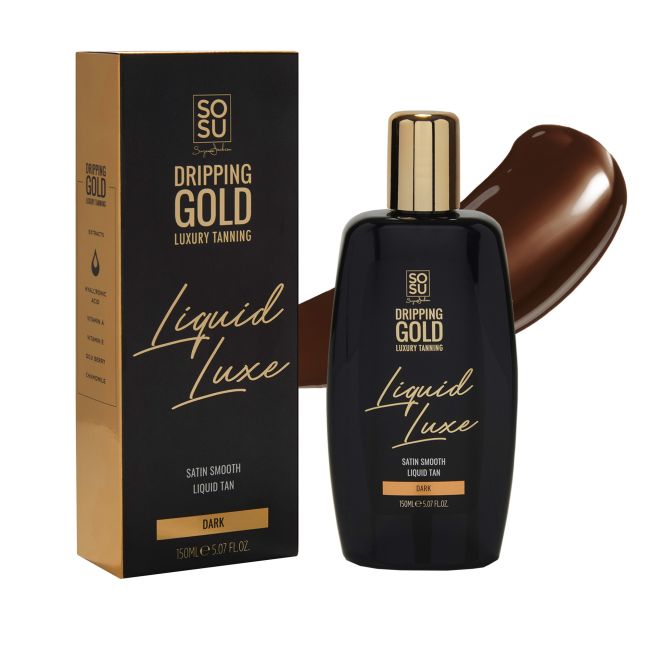 DRIPPING GOLD LIQUID LUXE DARK жидкость для автозагара Шелковистая мягкая кожа и насыщенный бронзовый цвет с жидкостью для автозагара DRIPPING GOLD LIQUID LUXE ULTRA DARK! Продукт обеспечивает темный загар. Содержит витамин Е, гиалуроновую кислоту, экстракты облепихи и ромашки. Применение 1. Отшелушивайте кожу перед загаром, но не увлажняйте ее и не используйте увлажняющий крем для душа. 2. Начните с чистой, сухой кожи, без дезодоранта, духов или макияжа. 3. Нанесите жидкость для загара на перчатку для загара Dripping Gold Velvet и нанесите на тело круговыми движениями, обеспечивая равномерное нанесение без полос. 4. Экономно наносите на руки, локти, колени и ступни. 5. Подождите не менее 7 часов, прежде чем принимать душ. Оставьте средство на ночь, чтобы загар стал темнее. Если вы хотите получить более интенсивный загар, нанесите еще один слой через 30 минут после первого нанесения. 6. Ежедневно увлажняйте кожу, чтобы загар держался дольше.