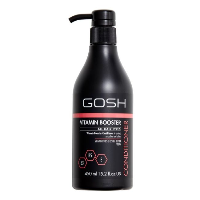 Кондиционер для волос GOSH VITAMIN BOOSTER предназначен для ухода за всеми типами волос. Активные ингредиенты в составе кондиционера защищают волосы, делают их гладкими и мягкими. Содержит витамин B3, витамин B5, витамин E и масло ши.