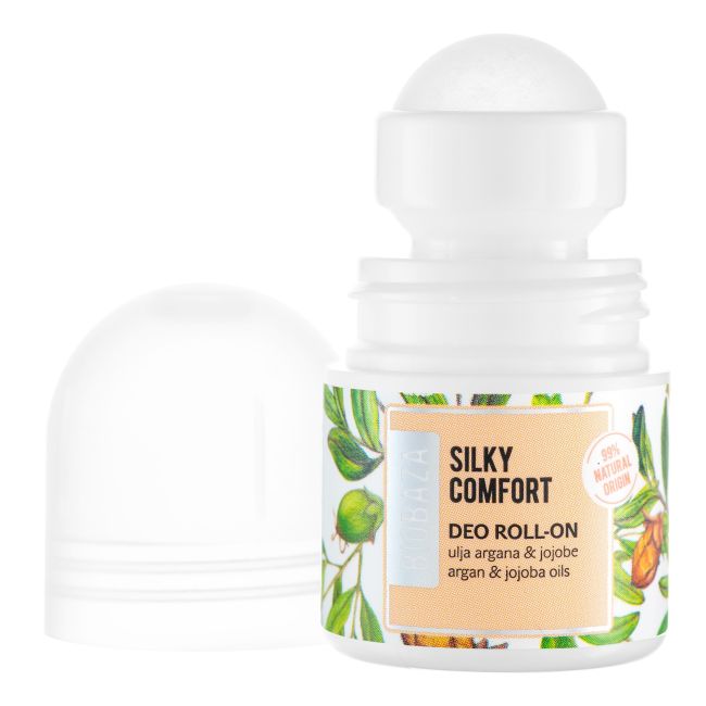 BIOBAZA SILKY COMFORT шариковый дезодорант Дезодорант помогает защитить от неприятного запаха пота, придает коже свежесть и шелковистую мягкость. Содержит масла жожоба и арганы. Содержит 99% активных ингредиентов натурального происхождения.
