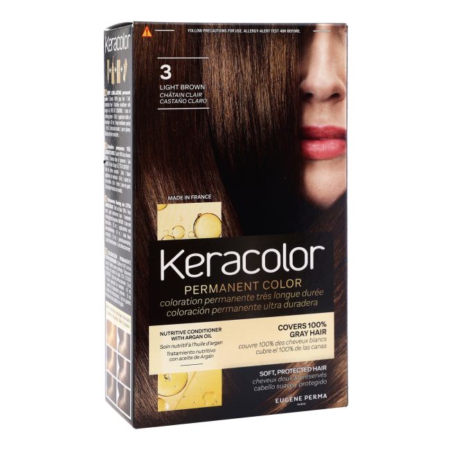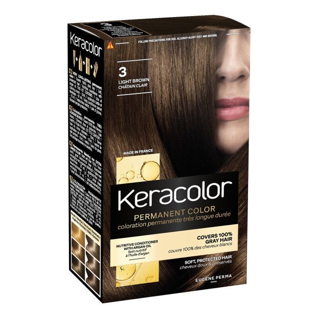 KERACOLOR краска для волос Краска для волос KERACOLOR удобна в использовании в домашних условиях. Продукт обеспечивает стойкий, интенсивный, насыщенный цвет, который закрашивает 100% седых волос. Богатый состав красителя и кондиционер с питательными свойствами придают волосам блеск, их цвет остается ярким и притягивает взгляды окружающих. В комплект входят: одноразовые перчатки, красящий крем (33 мл), крем-окислитель (67 мл), защитный питательный кондиционер для волос, информационный листок. Содержит высококачественные пигменты, аргановое масло. Способ применения Перед применением внимательно ознакомьтесь с инструкцией по применению и мерами предосторожности. Инструкцию по применению можно найти внутри упаковки (информационный листок).