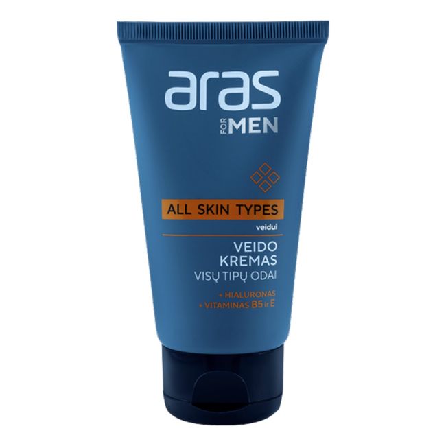 Крем для лица ARAS FOR MEN ДЛЯ ВСЕХ ТИПОВ КОЖИ Крем для лица ARAS специально разработан для ухода за мужской кожей. Крем легко наносится, быстро впитывается и подходит любому типу кожи. Содержащаяся в продукте гиалуроновая кислота обеспечивает интенсивное увлажнение. Витамины В5 и Е способствуют улучшению состояния кожи. Подходит для ежедневного использования. Содержит гиалуроновую кислоту, витамины B5 и E. Применение Нанесите средство на чистую кожу лица и шеи. Не наносить на область вокруг глаз.