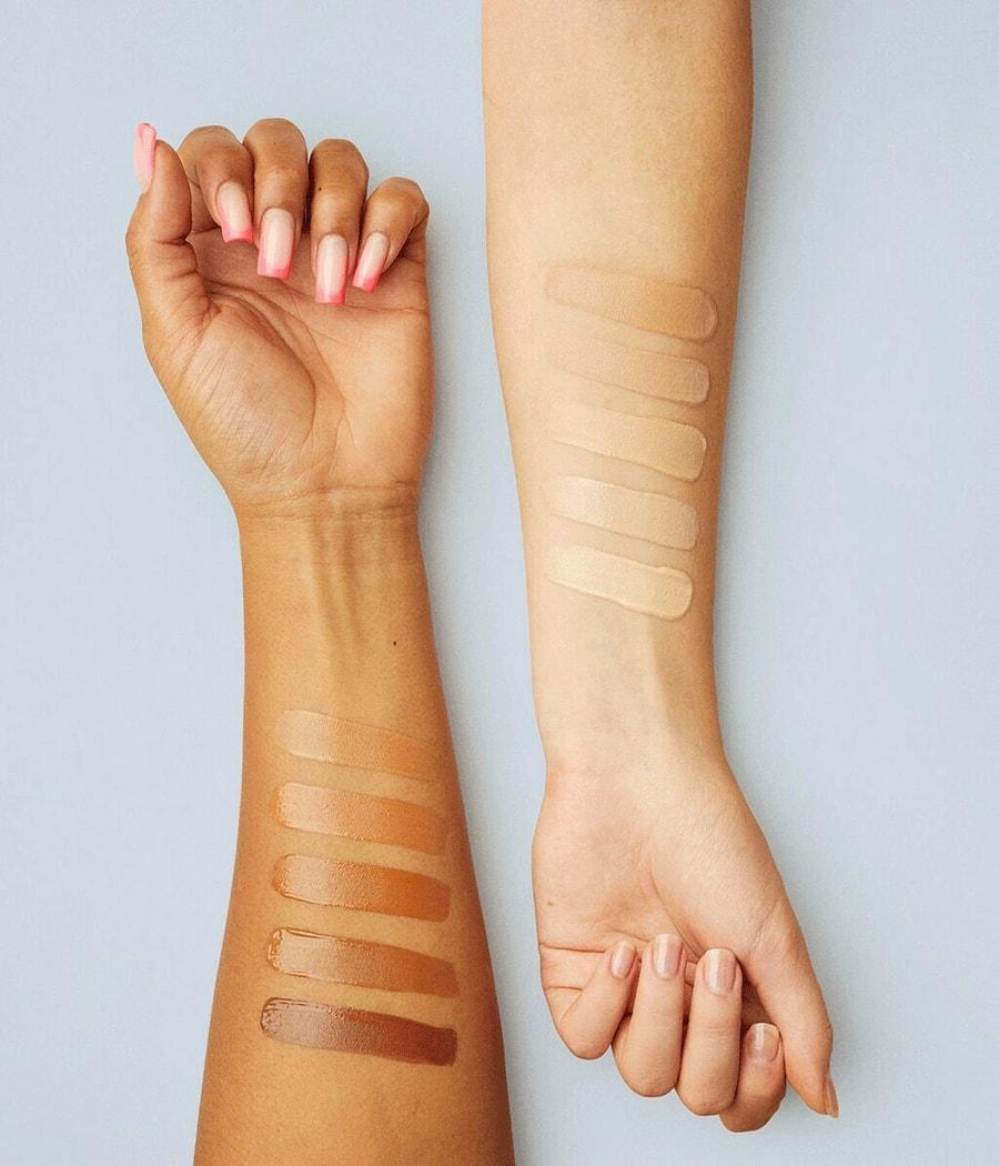 Нанесите небольшое количество средства на лицо кончиками пальцев или кисточкой для тонального крема, начиная с центра и растушевывая его наружу, чтобы получить безупречный результат.
