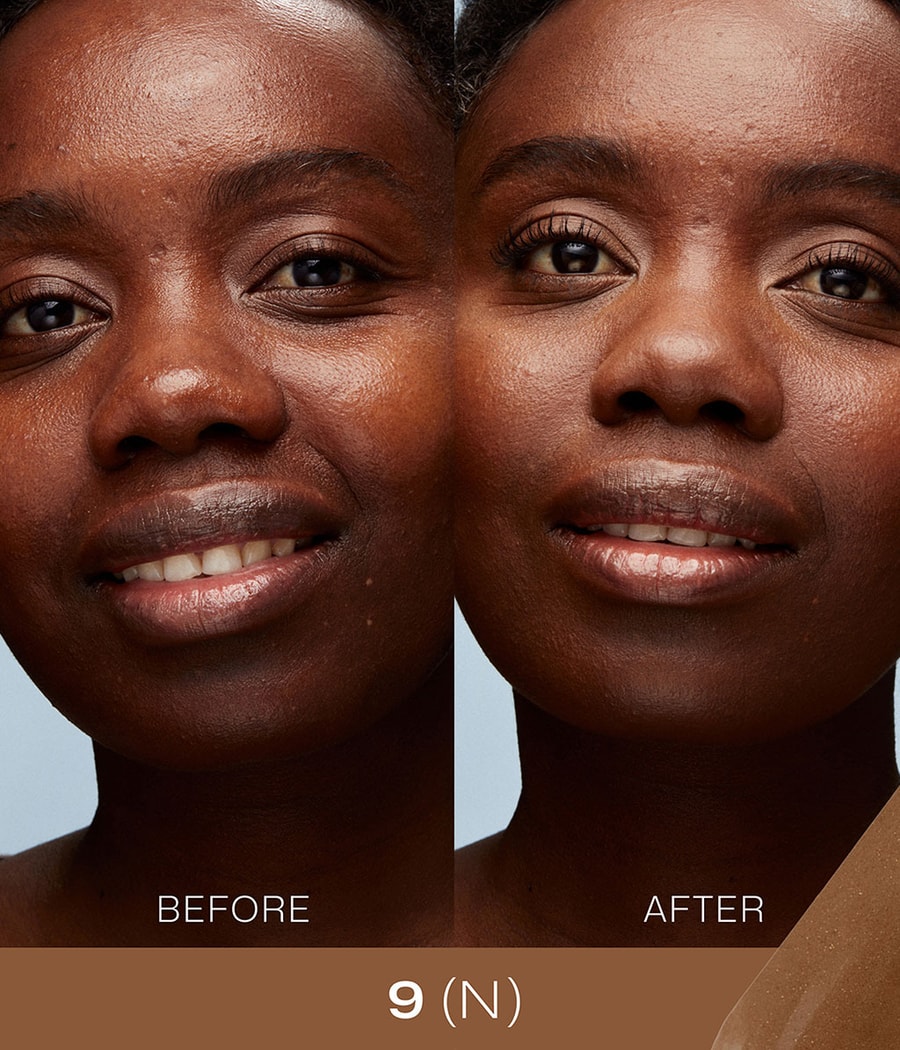 Нанесите небольшое количество средства на лицо кончиками пальцев или кисточкой для тонального крема, начиная с центра и растушевывая его наружу, чтобы получить безупречный результат.