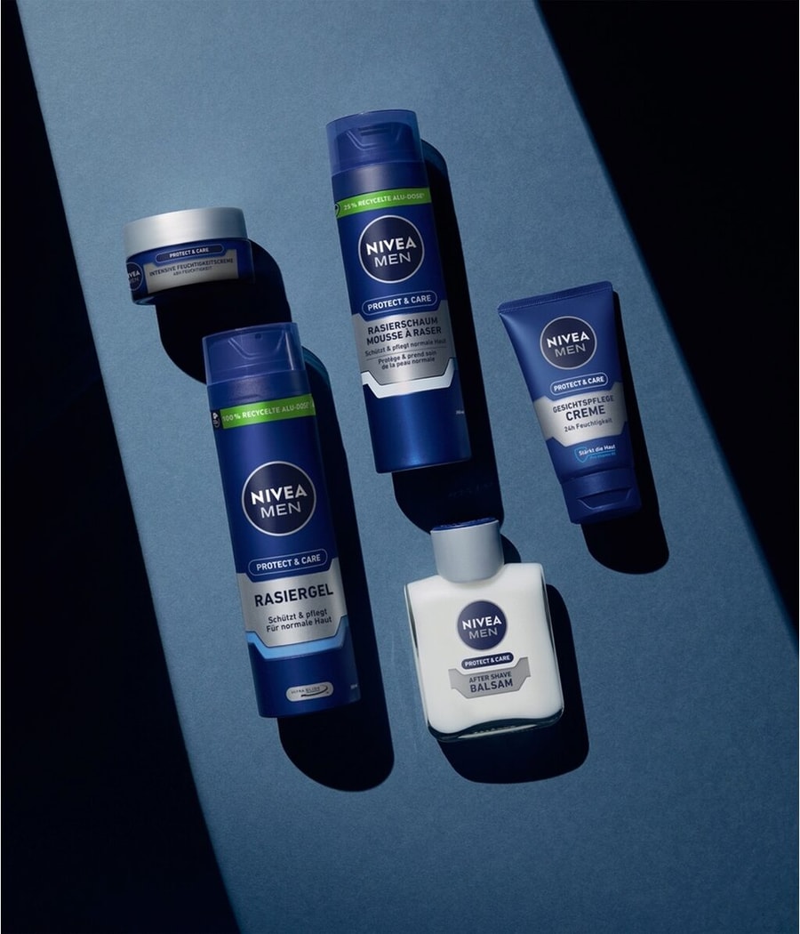 После бритья обильно нанесите на лицо и шею после бритья. Кроме того, для достижения наилучшего результата мы рекомендуем использовать крем для бритья NIVEA MEN Protect & Care.