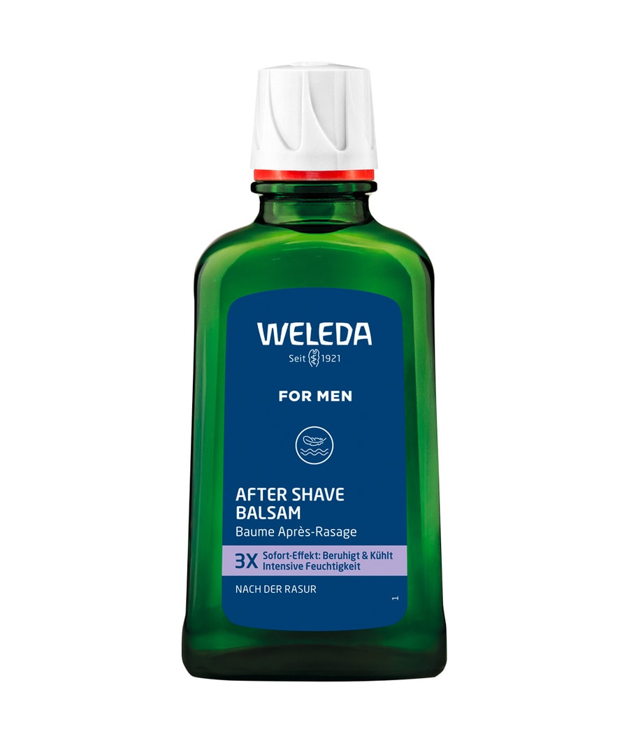 Бальзам Weleda после бритья естественным образом питает и успокаивает свежесть. Экстракты ромашки и мирры особенно мягко ухаживают за кожей, пострадавшей от сухого или влажного бритья. Охлаждающий и увлажняющий гель алоэ вера, а также ценное масло жожоба защищают кожу лица от высыхания, делая ее мягкой и эластичной. Розмарин, Лицея Кубеба и Тонка придают бальзаму после бритья Weleda мягкий и приятно освежающий аромат.