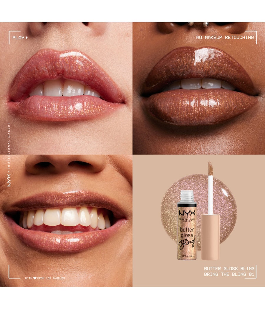 Блеск для губ Butter Gloss Bling от NYX Professional Make up сочетает в себе маслянисто-гладкую формулу с аккуратным блеском для глянцевых губ. Блеск для губ создает при этом соблазнительный мерцающий блеск в стиле 90-х годов. Веганский блеск для губ с подсветкой, не содержащий ингредиентов животного происхождения, легко наращивает свое покрытие, не оставляя ощущения липкости на губах.