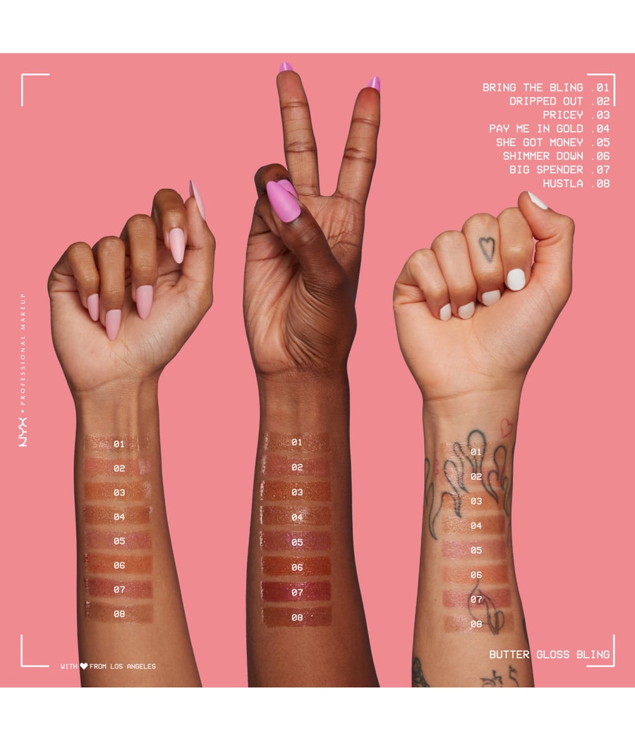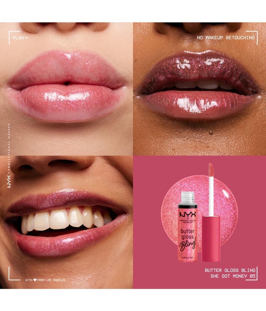 Блеск для губ Butter Gloss Bling от NYX Professional Make up сочетает в себе маслянисто-гладкую формулу с аккуратным блеском для глянцевых губ. Блеск для губ создает при этом соблазнительный мерцающий блеск в стиле 90-х годов. Веганский блеск для губ с подсветкой, не содержащий ингредиентов животного происхождения, легко наращивает свое покрытие, не оставляя ощущения липкости на губах.