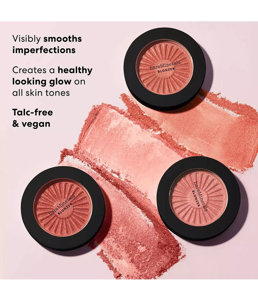 Гибрид для идеального сияния, поцелованного солнцем: блонзер Gen Nude от bareMinerals сочетает в себе розовый оттенок румянца с теплотой бронзатора. Всего за один прием инновационная формула 2-в-1 на коже имитирует естественное сияние, как после дня, проведенного на солнце, создавая великолепный образ „только что с пляжа“. Веганский блонзер без талька с минеральными и светоотражающими пигментами сводит к минимуму появление неровностей и создает сияющий эффект. Его невесомая и шелковистая текстура восхитительно проста в нанесении и легко впитывается. Blonzer Blush + Bronzer представлен в идеально наращиваемых оттенках, которые просто идеально подходят для всех оттенков кожи