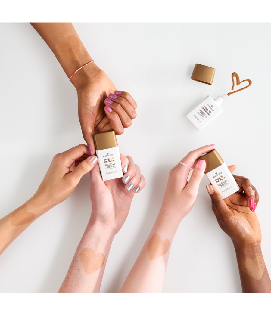 Придайте своей коже сияющий вид с помощью essence DROP OF sunshine BRONZING DROPS. Легкие капли выполнены в нейтральном бронзовом тоне. Тонкий жемчуг легко впитывается в кожу, придавая вам здоровый и здоровый вид, поцелованный солнцем. Содержащийся в нем глицерин обеспечивает кожу влагой, которой она заслуживает, и при этом обладает небесным ароматом кокоса. Не забудьте хорошо встряхнуть флакон перед нанесением бронзирующих капель. Вы можете использовать их по отдельности для более интенсивного эффекта или смешать с вашим любимым средством для ухода за кожей или тональным кремом. Вот как вы получите сияющий цвет лица.