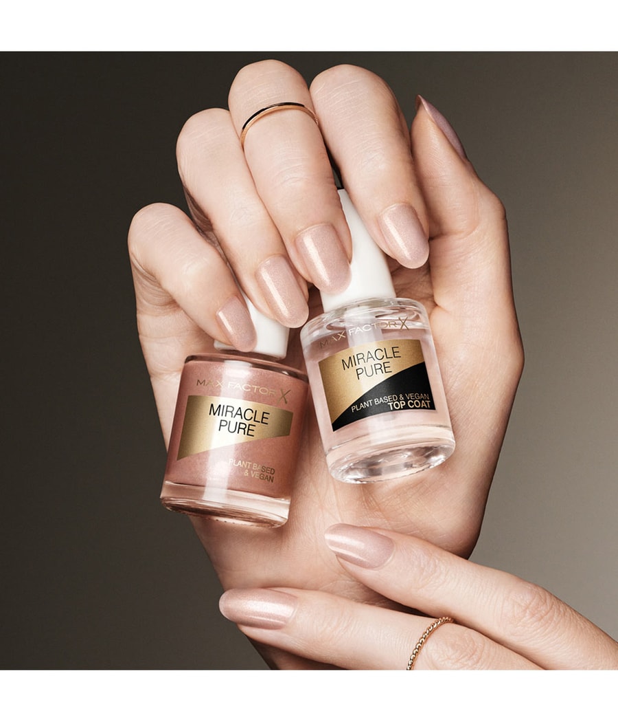 Сделайте себе идеальный маникюр от начала до конца с помощью лакокрасочного покрытия Max Factor Miracle Pure. Нанесение быстросохнущего покрытия - это последний этап идеально подобранной процедуры ухода Max Factor для крепких и здоровых ногтей. Веганская формула, содержащая до 77 процентов натуральных ингредиентов, помогает закрепить цвет и придать ему высокий блеск. Для удобства использования бутылка имеет дополнительную эргономичную крышку, изготовленную из переработанных материалов. Веганская изогнутая кисть позволяет наносить легкий лак без разводов в кратчайшие сроки.