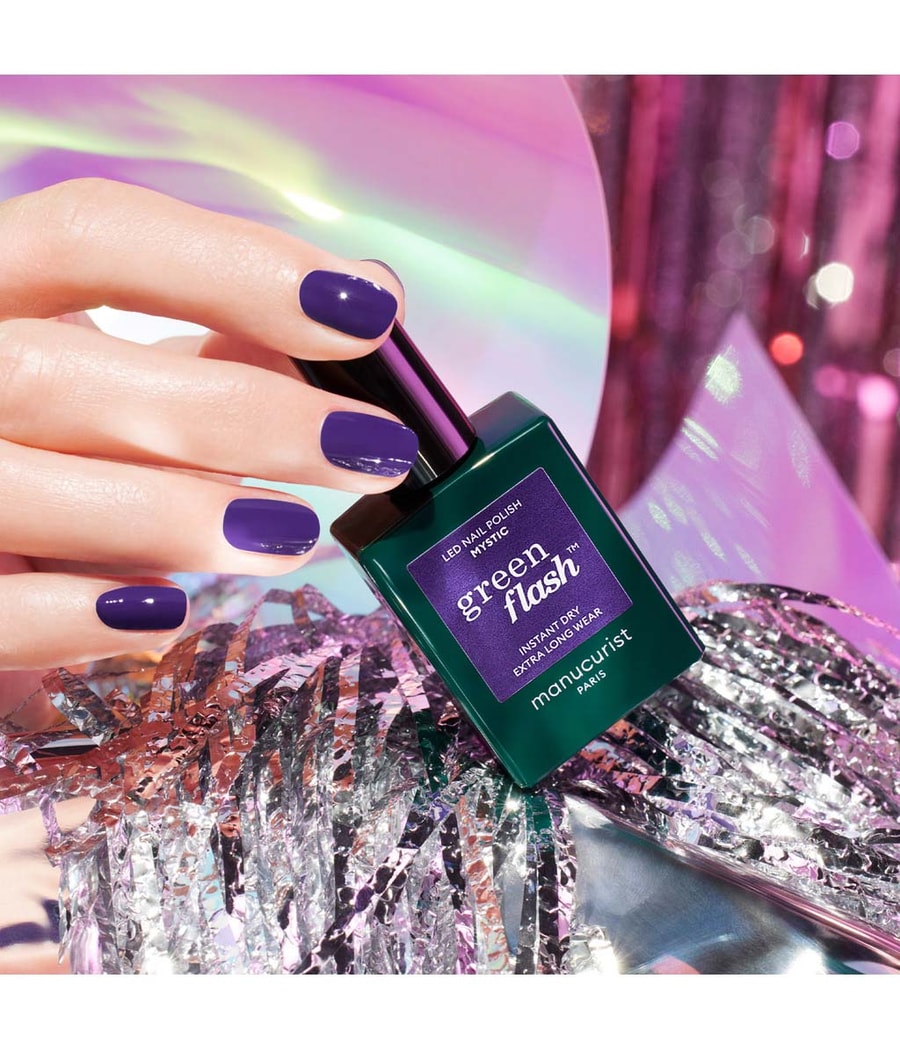 Для полного маникюра Green Flash вам понадобится базовый слой Green Flash, цвет Green Flash и верхний слой Green Flash. Каждый этап маникюра обрабатывается светодиодной лампой с минимальной мощностью 18 Вт.