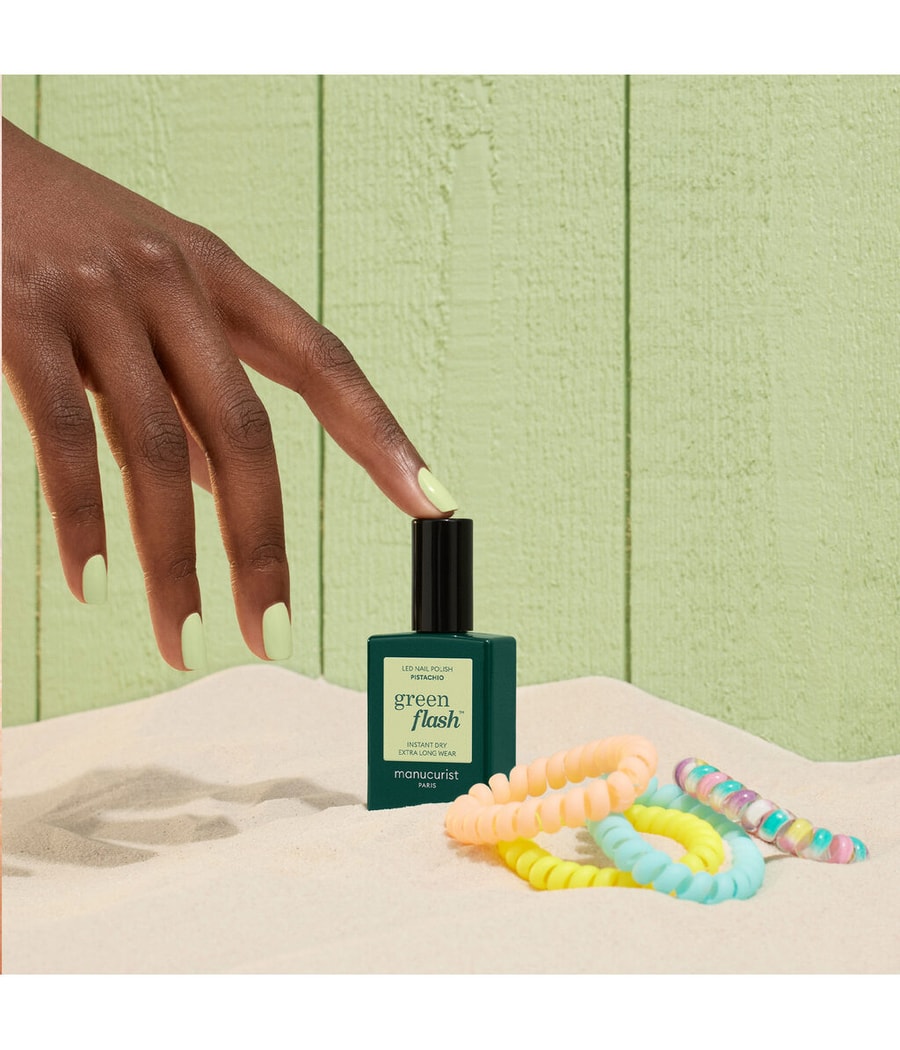 Для полного маникюра Green Flash вам понадобится базовый слой Green Flash, цвет Green Flash и верхний слой Green Flash. Каждый этап маникюра обрабатывается светодиодной лампой с минимальной мощностью 18 Вт.