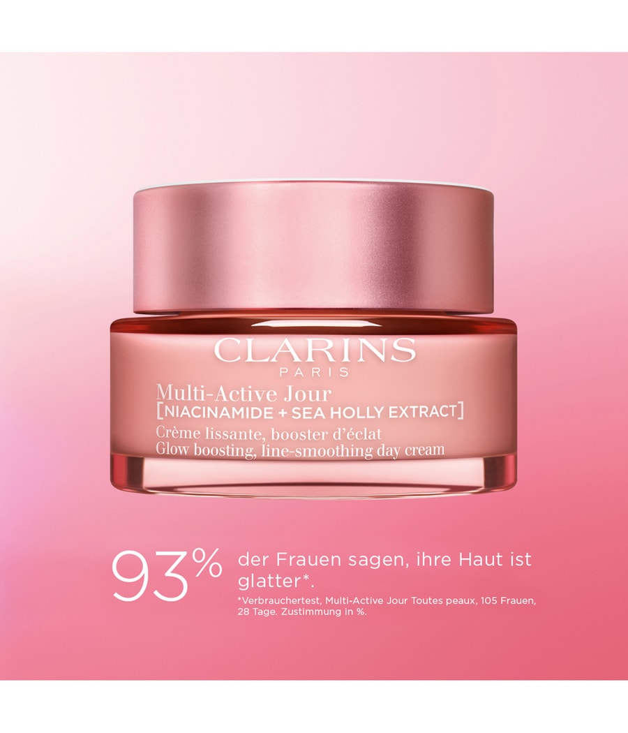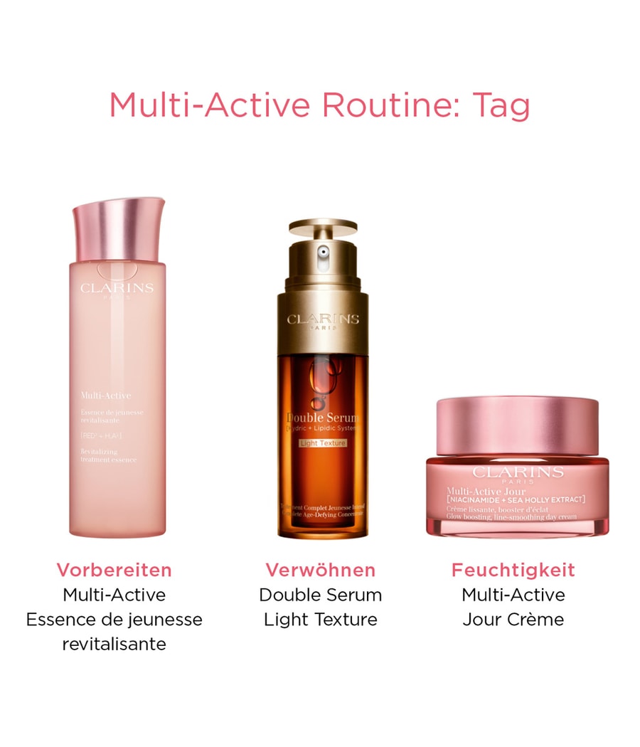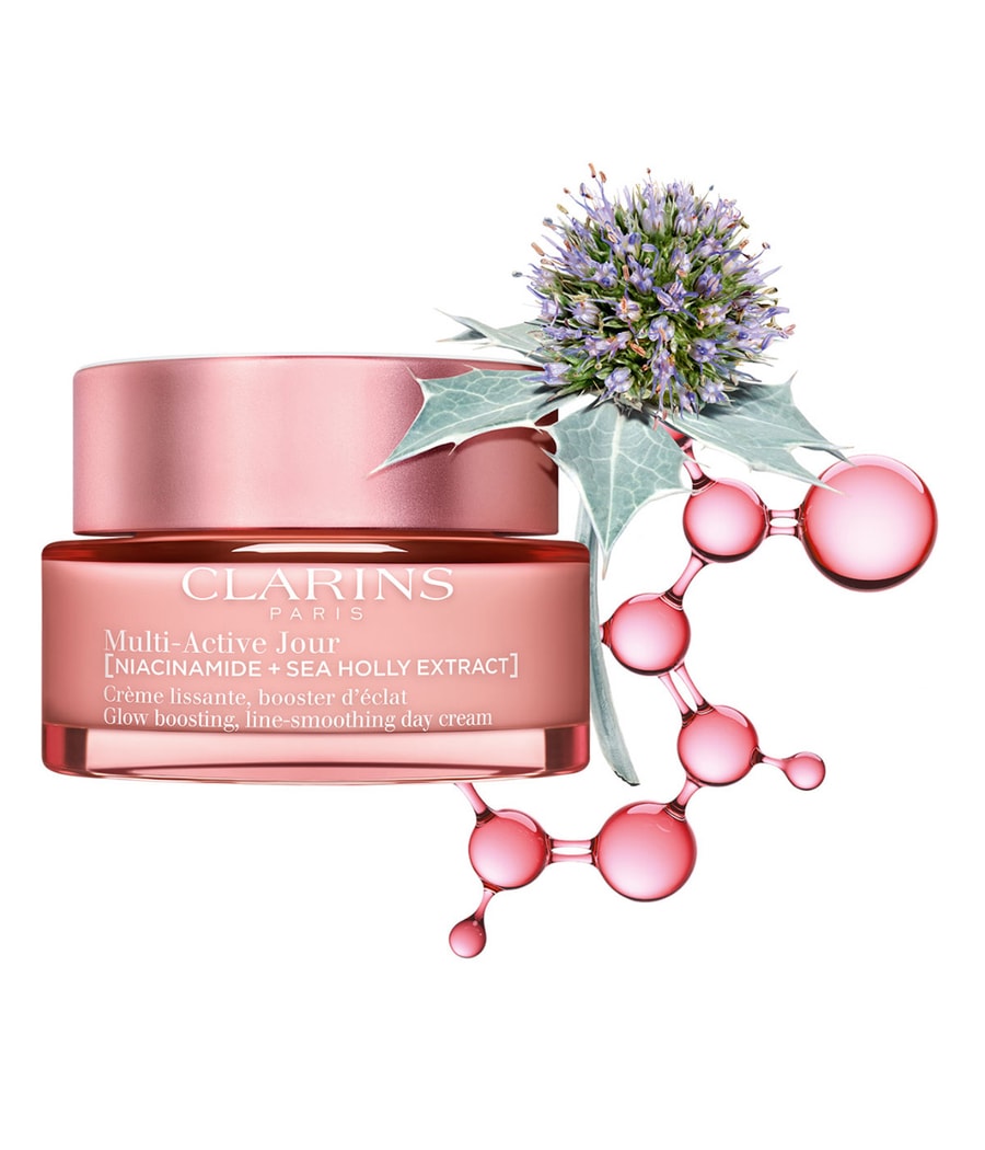 Исследование Clarins выявило 8 видимых признаков старения кожи, которые усугубляются напряженным образом жизни и ежедневным стрессом. Мы называем это явление стрессовым старением: ускорение старения кожи, связанное со стрессом, вызванным темпом жизни. Линия средств по уходу за кожей Multi-Active способствует молодому внешнему виду и повышению упругости кожи. Кожа подвергается воздействию интенсивного образа жизни и должна сохранять свою энергию и упругость в течение дня. Этот насыщенный, разглаживающий и придающий сияние крем, содержащий 91% ингредиентов натурального происхождения, использует инновационную технологию: