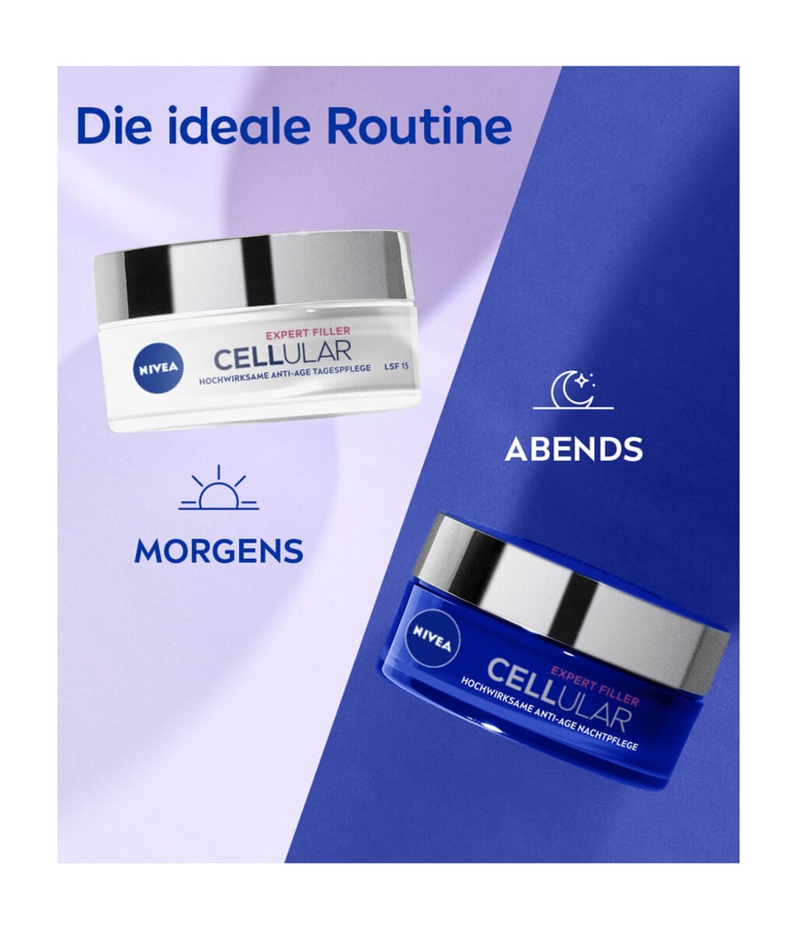 Дневной крем NIVEA CELLULAR Expert Filler Day Cream SPF 15 с инновационной формулой содержит комбинацию высокоэффективных антивозрастных ингредиентов, которые создают эффект заполнения в течение 24 часов* и противодействуют потере упругости и объема, благодаря чему кожа выглядит моложе. Формула с: ЧИСТОЙ ФОЛИЕВОЙ КИСЛОТОЙ, незаменимым витамином, поддерживает эластичность волокон кожи* - для более упругой и гладкой кожи МИКРО- И МАКРОГИАЛУРОНОВОЙ КИСЛОТОЙ, двумя незаменимыми антивозрастными ингредиентами, помогает эффективно заполнять морщины, разглаживать кожу и интенсивно увлажнять ее. Откройте для себя дополнительную защиту SPF 15 от UVA/UVB-излучения, которая предотвращает преждевременное старение кожи и повреждение клеток, вызванное УФ-излучением. *продемонстрировано in vitro.