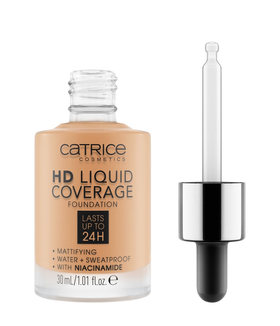 Почувствуйте волшебство макияжа: Жидкая основа для макияжа Catrice HD придает вашей коже бархатисто-матовый, безупречный цвет лица. Это похоже на волшебство. Но это не так, это макияж. Жидкая основа обладает эффектом второй кожи. Он обладает приятной мягкой текстурой с высоким и в то же время естественным покрытием без эффекта маски, обеспечивая ровную и матовую поверхность. Она скрывает пятна и смягчает покраснения. Их формула обогащена ниацинамидом, улучшающим состояние кожи, и не содержит парабенов и микропластических частиц. Жидкая основа для покрытия Catrice HD является водостойкой, устойчивой к поту и переносимой, поэтому ее срок службы составляет до 24 часов.