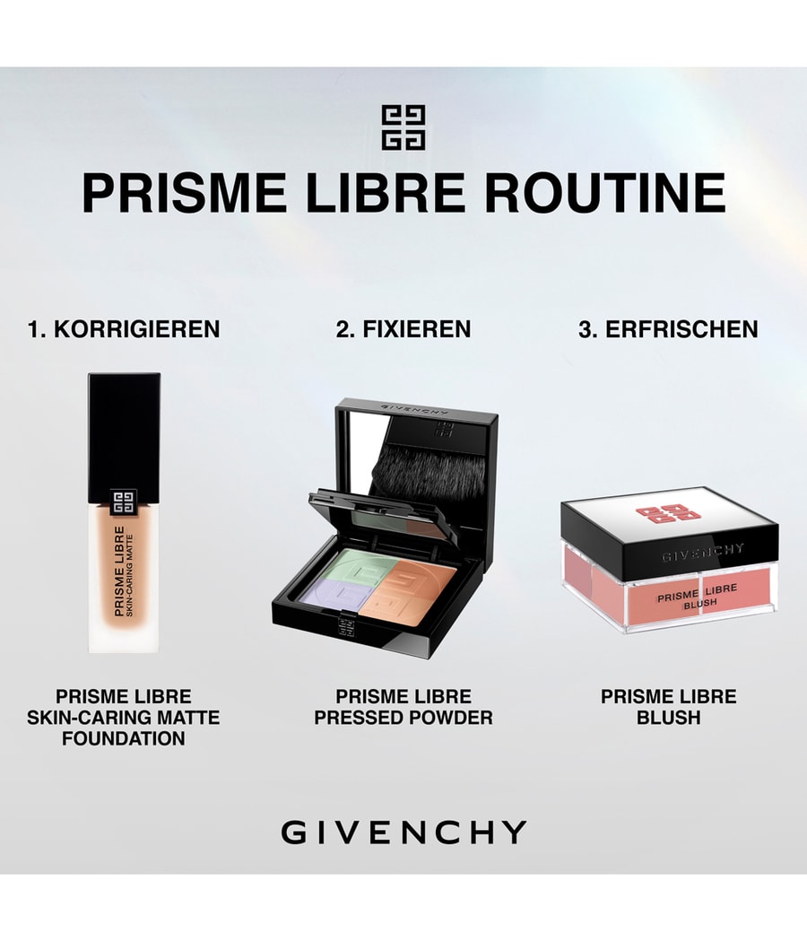 Givenchy представляет матовую основу для ухода за кожей Prisme Libre, первую * стойкую основу, которая сочетает в себе сияющее матовое покрытие с преимуществами ухода за кожей. Этот корректирующий и питательный тональный крем, в состав которого входит 82% средств по уходу за кожей ** и 97% натуральных ингредиентов ***, мгновенно придает коже чудесный матовый цвет - результат сохраняется в течение 24 часов. Кожа может дышать и сияет естественным, сияющим и матовым совершенством.