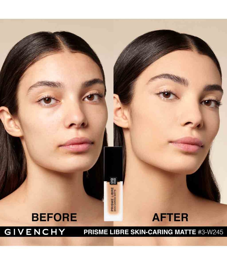 Givenchy представляет матовую основу для ухода за кожей Prisme Libre, первую * стойкую основу, которая сочетает в себе сияющее матовое покрытие с преимуществами ухода за кожей. Этот корректирующий и питательный тональный крем, в состав которого входит 82% средств по уходу за кожей ** и 97% натуральных ингредиентов ***, мгновенно придает коже чудесный матовый цвет - результат сохраняется в течение 24 часов. Кожа может дышать и сияет естественным, сияющим и матовым совершенством.