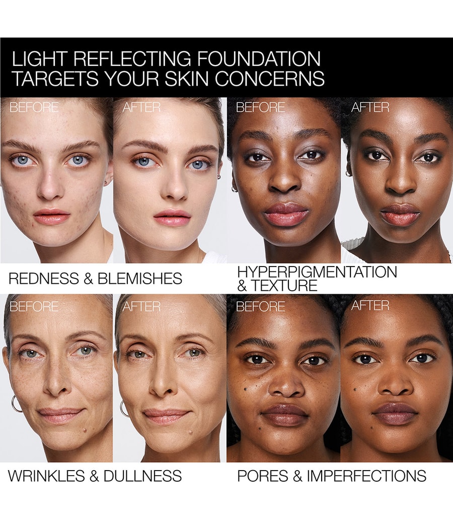 Используя СВЕТООТРАЖАЮЩУЮ ОСНОВУ, NARS создала инновационный состав, который придаст вашей коже наилучшее сияние. Обогащенная уникальной комбинацией сложных кондиционирующих тканей, дышащая и легкая как перышко формула скрывает неровности, темные пятна и покраснения, защищая кожу как от воздействия окружающей среды, так и от синего света. Кожный барьер укрепляется и сохраняет влажность кожи. После шести недель использования кожа выглядит заметно улучшенной, даже после снятия макияжа.*