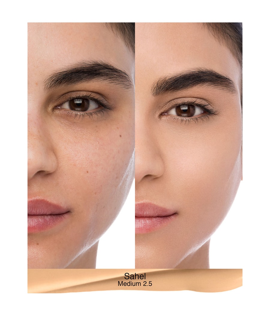СОВЕТ ВИЗАЖИСТА: Возьмите количество продукта размером с бусинку. Тональный крем с высокой концентрацией пигментов идеально подходит для растушевки. Имея лишь небольшое количество продукта, вы продвинетесь очень далеко. Если вы нанесете слишком много тонального крема, так называемые пигменты для распознавания кожи, которые, как магниты, обеспечивают стойкость, могут не дать идеального эффекта. Рекомендуется регулярно проводить отшелушивание, чтобы создать идеальную основу для тонального крема. Сначала нанесите тональный крем пальцами, при необходимости растушуйте губкой.