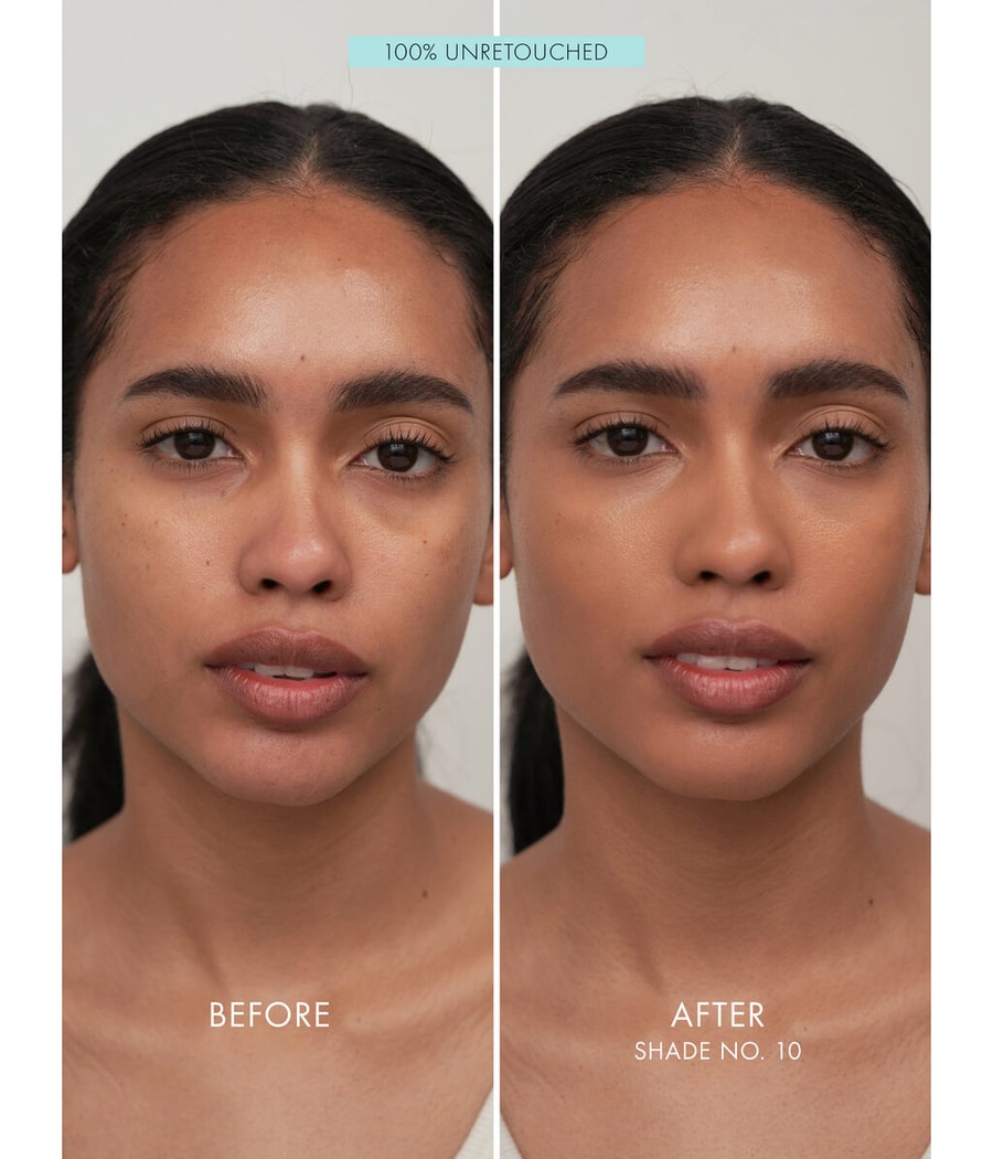 Легкая, жидкая формула для безупречного „эффекта стеклянной кожи", который сохраняется в течение всего дня. Смесь средства по уходу за кожей и тонального крема с шелковистой эластичной текстурой, которая приятна на ощупь и выглядит как вторая кожа. Слегка светоотражающий и гибкий состав делает кожу эластичной, придает ей естественное сияние и гарантирует постоянное увлажнение. Обогащен высокоэнергетической морской водой и водорослями, которые увлажняют кожу и защищают ее от внешних воздействий, таких как загрязнение и синий свет. Доступен в 15 оттенках. Результат: отдохнувший, ровный цвет лица с шелковистым сияющим блеском. Естественный эффект второй кожи. Средняя непрозрачность. Настраиваемый.