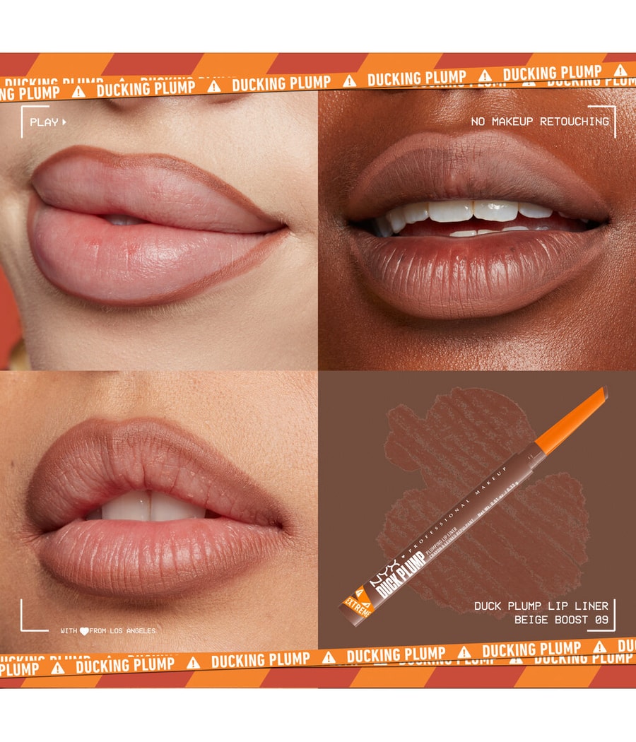 Теперь есть совершенно пухлые губы без надоедливых уколов булавкой! Благодаря веганской подводке для пухлых губ NYX Professional Makeup от Duck Plump можно легко создать эффект пухлых надутых губ. Color Ducking Clear из коллекции подводок для пухлых губ Duck - это прозрачный карандаш для контура губ, в состав которого входят такие ингредиенты, как перец чили и острый имбирь., который естественным образом придает губам упругость – с мгновенным эффектом! Точность и растушевка объединены в одной подводке для губ: благодаря скошенному кончику можно рисовать тонкие, точные линии, а плоский край скошенного кончика обеспечивает легкое затенение.