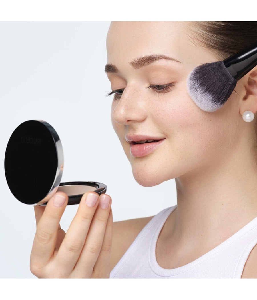 В отличие от традиционных пудр, которые часто узнаваемы при ближайшем рассмотрении из-за их зернистой текстуры, микротонкая текстура компактной пудры высокой четкости идеально сочетается с цветом лица и едва различима даже при ближайшем рассмотрении. Многоразовая пудра также отличается чрезвычайно шелковистым и мягким ощущением при нанесении и легкой, как перышко, способностью к нанесению. Благодаря маслопоглощающим свойствам блестящая кожа становится идеально матовой. Тени, морщины и неровности скрываются благодаря светоотражающим пигментам, благодаря которым цвет лица будет выглядеть идеально при любом освещении. Благодаря встроенному зеркалу и губке компактный порошок высокой четкости идеально подходит для быстрого нанесения, в том числе в дороге.
