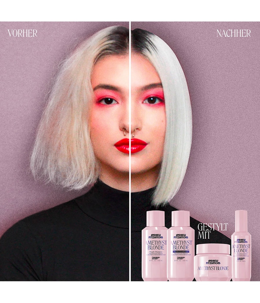 Фиолетовый кондиционер Amethyst Blonde сделает ваши волосы сияющими! Содержит питательные ингредиенты, которые увлажняют волосы и помогают избавиться от желтого и оранжевого оттенка. Идеально подходит для светлых, вьющихся и седых волос.