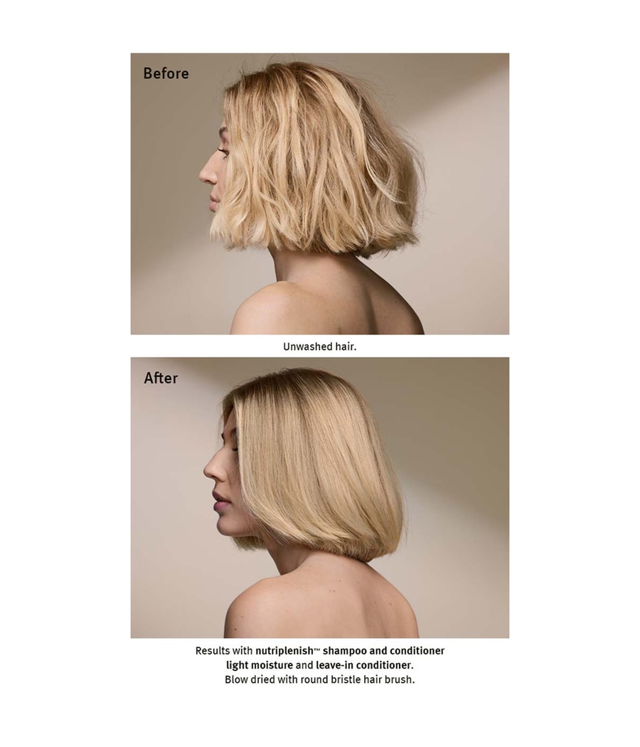 Нанесите кондиционер Nutriplenish на влажные волосы, оставьте на две-три минуты, тщательно смойте
