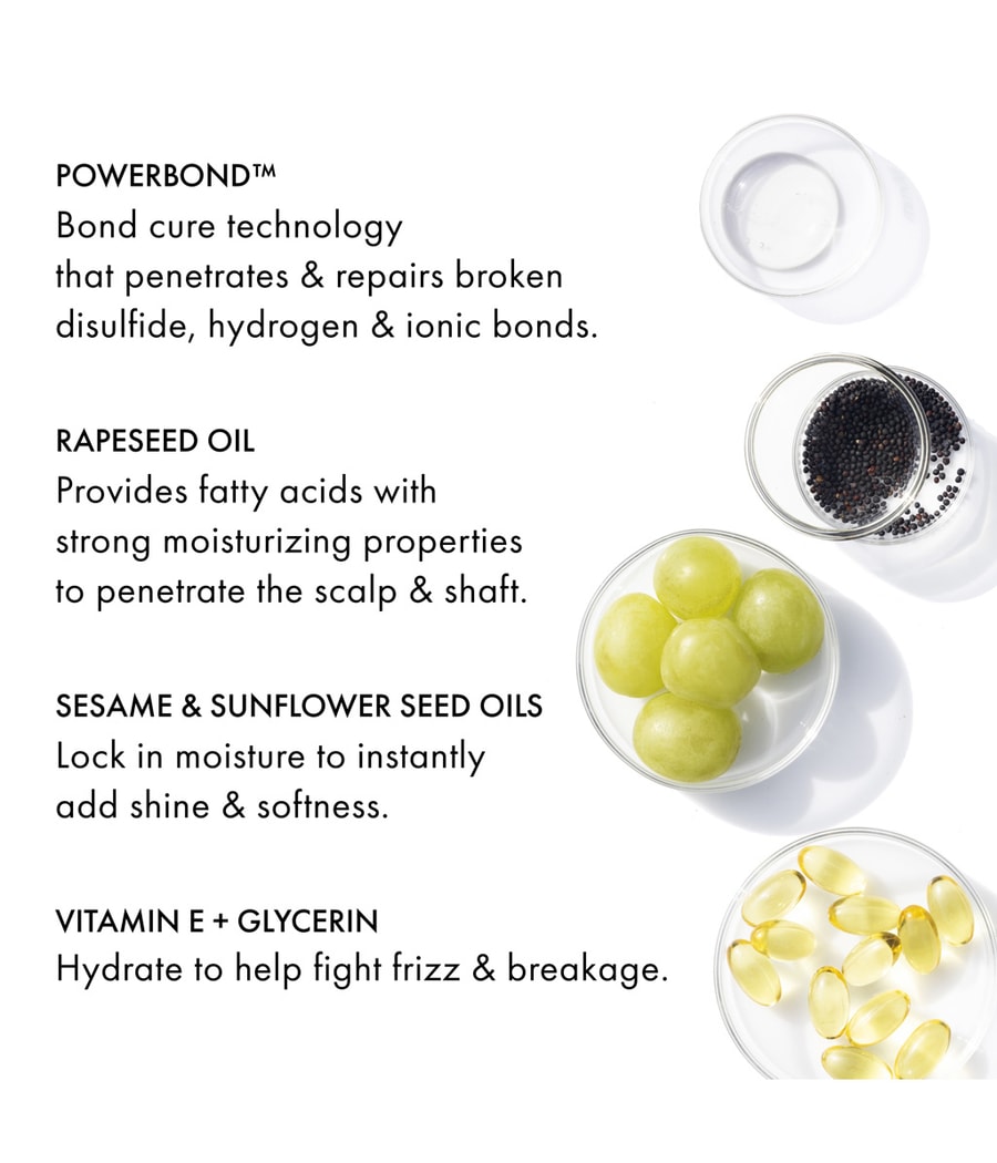 Кондиционер тройного действия Powerbond, который связывает, восстанавливает и защищает волосы, придавая им мгновенный эффект против ломкости и эластичность.