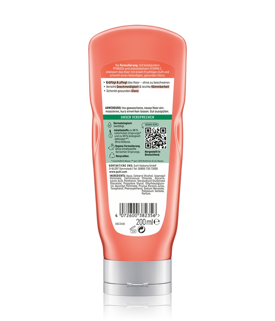 Мягкий состав: Благодаря персику кондиционер имеет фруктовый аромат и бодрит - Формула для блестящих волос