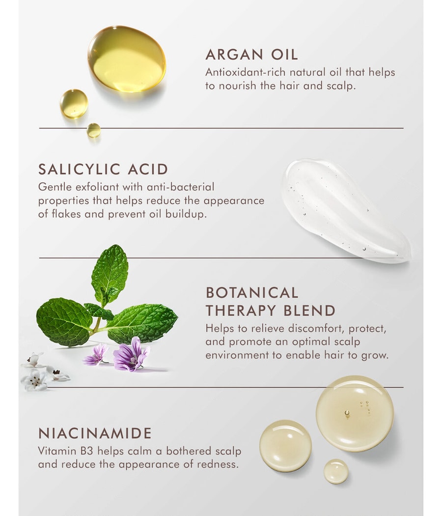 Питательное кондиционирующее средство, которое увлажняет волосы, одновременно успокаивая жирную и сухую кожу головы. Ниацинамид и салициловая кислота уменьшают видимую перхоть и покраснение.