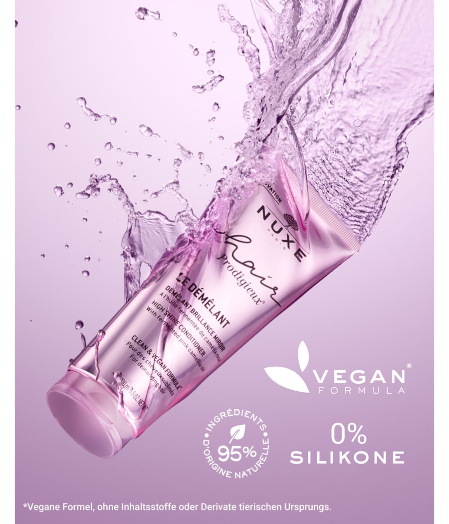 Кондиционер для придания блеска, основанный на ноу-хау лаборатории Nuxe в области растительных масел, обеспечивает немедленный уход за распущенными волосами с изысканным ароматом. Это средство для распутывания волос без силикона и с ферментированным маслом розовой камелии интенсивно питает волокна волос. Текстура бальзама с символическим ароматом Huile Prodigieuse обволакивает волосы, создавая новый чувственный ритуал. Волосы сияют и становятся неотразимо нежными на ощупь.