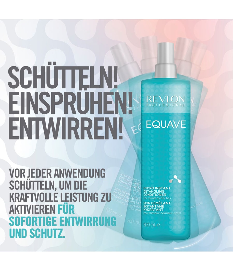 Revlon Professional Equave эффективно сочетает в себе средство для распутывания волос с формулами для защиты и особого ухода за волосами разных типов. Таким образом, ассортимент простых в применении несмываемых кондиционеров позволяет использовать индивидуальные решения по уходу. Наш профессиональный двухфазный несмываемый кондиционер Equave Hydro для нормальных и сухих волос мгновенно распутывает волосы, действует как праймер для волос, что делает его первым шагом в вашем повседневном уходе за волосами. Наш классический спрей для распутывания волос имеет легкую двухфазную формулу, которая дает множество мгновенных преимуществ. Волосы в 9 раз легче распутываются и в 2 раза более устойчивы к ломкости, что помогает дольше сохранять их длину и кончики здоровыми. Волосы можно укладывать безопасным способом, так как кондиционер защищает волосы от воздействия тепла до 220 °. Благодаря разработанной экспертами Kinetic Technology в несмываемом кондиционере упражнения сочетаются с инновациями. Встряхивая двухфазный несмываемый спрей, две фазы смешиваются вместе, чтобы мгновенно распутать и защитить волосы. Тряска. Опрыскивание. Распутать. Несмываемый кондиционер с термозащитным покрытием можно распылять на влажные или сухие волосы очень просто, не смывая. Распущенные волосы выглядят на 89% более гладкими и блестящими. Чтобы оптимизировать каждый этап вашего профессионального ухода за волосами, кондиционер для нормальных и сухих волос объемом 500, 200 или 50 мл можно наносить после использования мицеллярного шампуня Revlon Professional Equave для детоксикации Equave после использования шампуня Revlon Professional Equave .