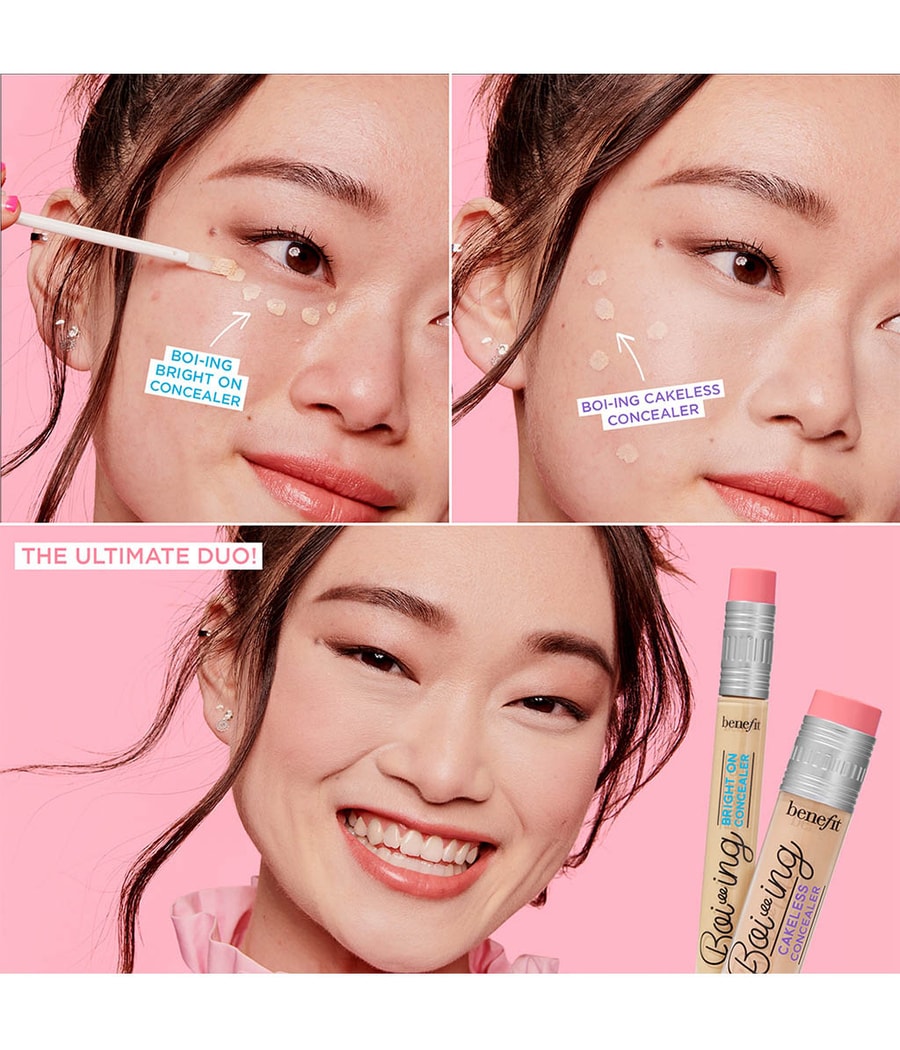 Идеальная пара! Для этого используйте наш новый консилер без косточек Boi-ing. Он маскирует видимые пятна и обесцвечивание кожи, а благодаря своим 30 различным оттенкам придает вашему макияжу индивидуальный вид!