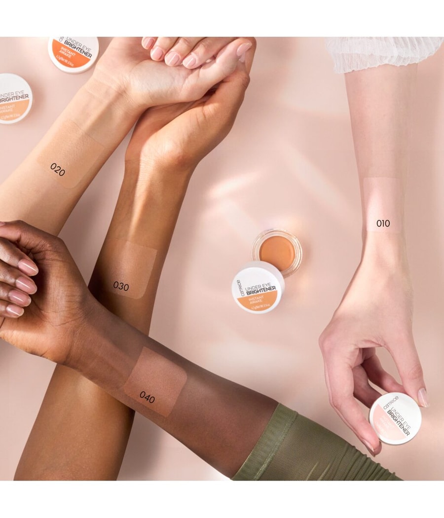Чтобы нанести осветлитель для век Catrice, просто используйте теплый безымянный палец, губку для макияжа или кисточку. Аккуратно нанесите осветляющий консилер на кожу под глазами, пока он полностью не растает. Для безупречного результата закрепите его в подходящем оттенке с помощью пудры для осветления глаз Catrice Under Eye Brightener Setting Powder.