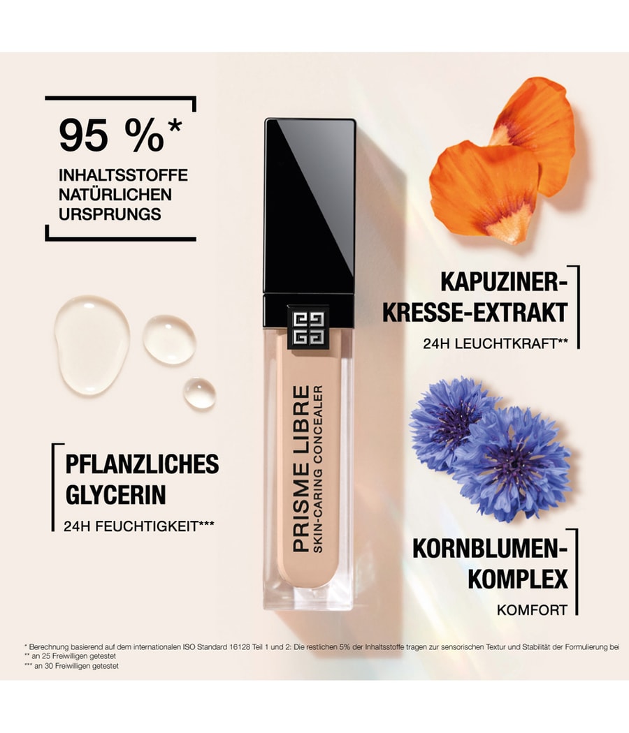 Консилер Givenchy Prisme Libre для ухода за кожей, первый в своем роде 24-часовой многофункциональный консилер во вселенной Givenchy. Он на 95% состоит из натуральных ингредиентов2 и не только маскирует, корректирует и объединяет, но и обеспечивает увлажнение и сияние в течение 24 часов13.
