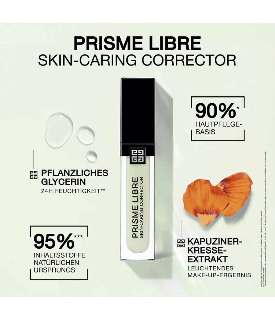 Корректор ухода за кожей Givenchy Prisme Libre, первый в своем роде многоцелевой корректор в линейке косметики Givenchy, покрывает, выравнивает и увлажняет кожу. 95% натуральная формула2 с 90%-ной питательной основой3 и 24-часовым увлажняющим средством1 придает коже сияние.