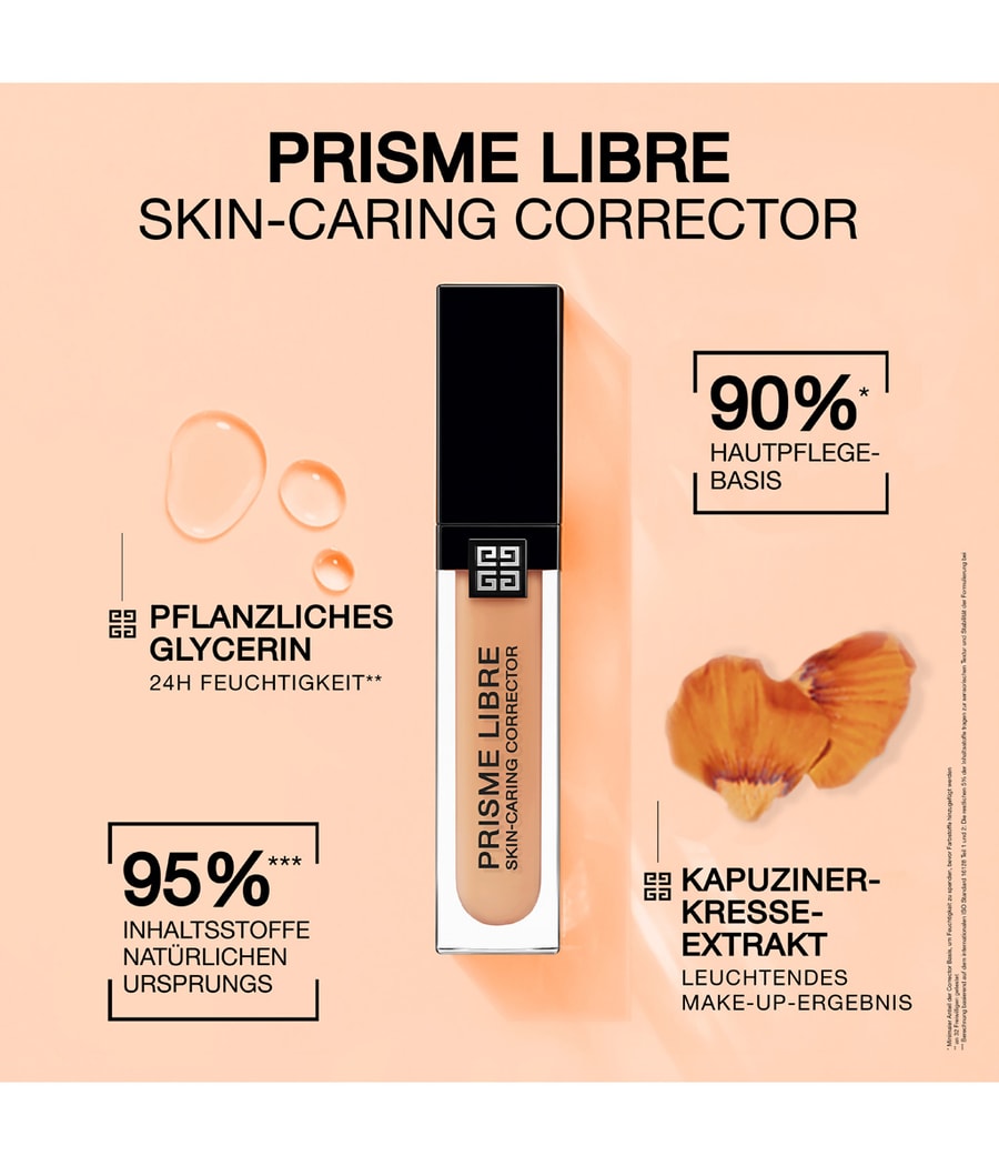 Корректор ухода за кожей Givenchy Prisme Libre, первый в своем роде многоцелевой корректор в линейке косметики Givenchy, покрывает, выравнивает и увлажняет кожу. 95% натуральная формула2 с 90%-ной питательной основой3 и 24-часовым увлажняющим средством1 придает коже сияние.