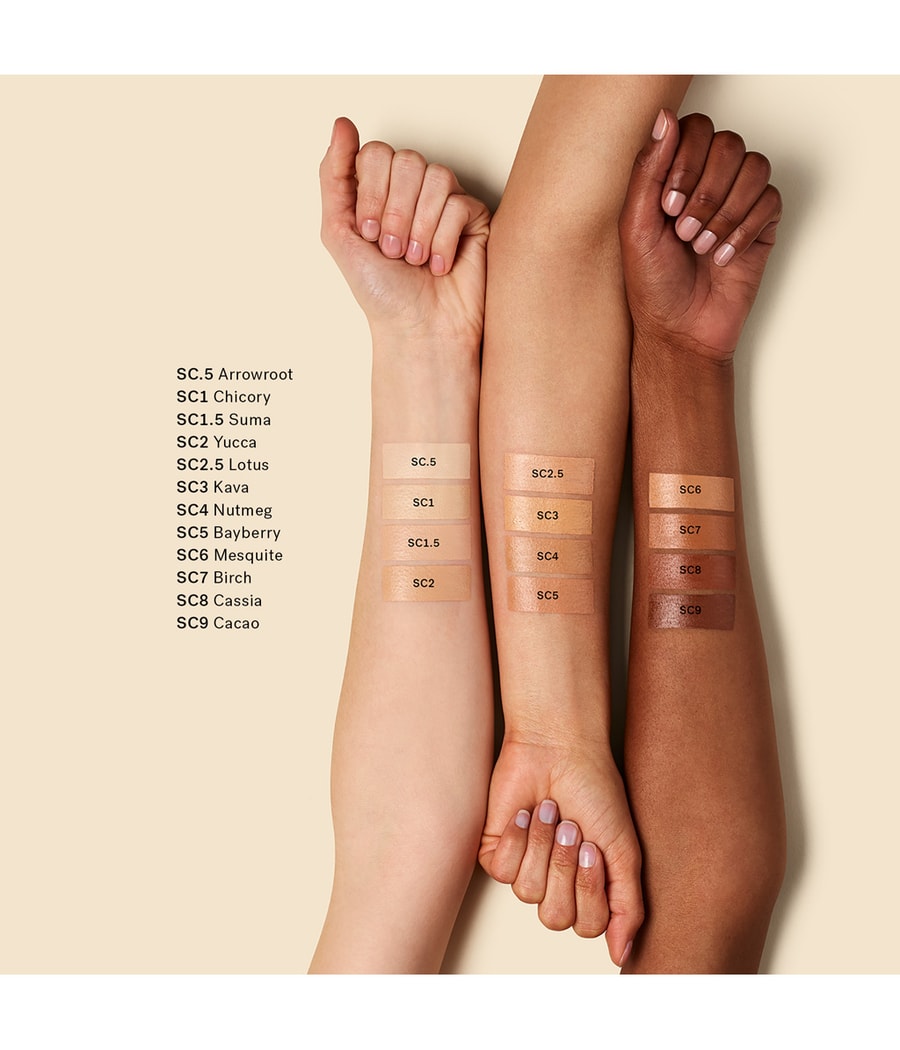 Консилер, содержащий такие ингредиенты, как витамин С и экстракт коры альбиции-джульбриссина, защищает кожу от воздействия свободных радикалов и вредного воздействия окружающей среды: он также помогает визуально подтягивать, успокаивать и кондиционировать поверхность кожи. Смола мастичного дерева, произрастающего на греческом острове Хиос и обладающего антибактериальными свойствами, матирует кожу в течение дня, делая поры более мелкими.
