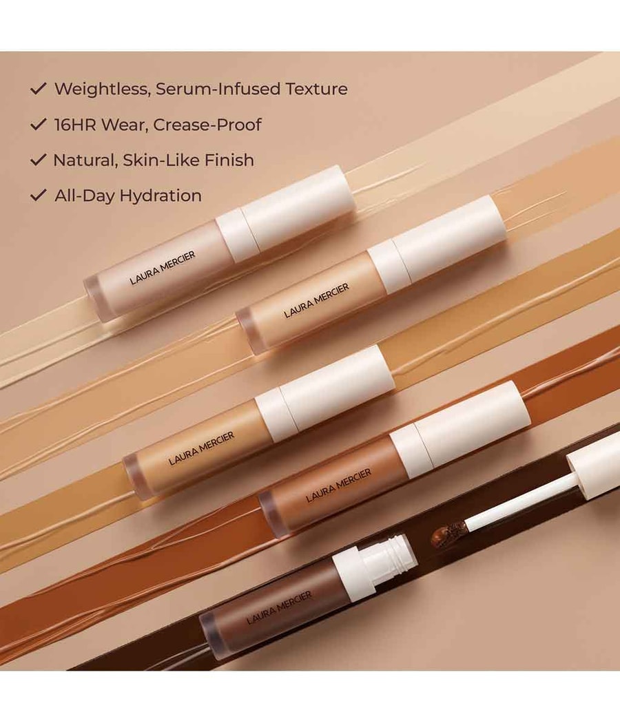 Le Petit Secret. Консилер Laura Mercier с естественным безупречным покрытием и наращиваемым покрытием. Обогащенный питательной сывороткой, он мгновенно осветляет и разглаживает кожу за счет содержащегося в нем экстракта бразильского ореха в течение длительного времени. Исчезнут тонкие линии и морщины. Благодаря инновационному аппликатору консилер Real Flawless Weightless Perfecting Concealer с высокой точностью покрывает неровности и темные участки и безупречно растушевывается на коже. Новый уровень совершенства с 16-часовой остановкой. Как невидимый.